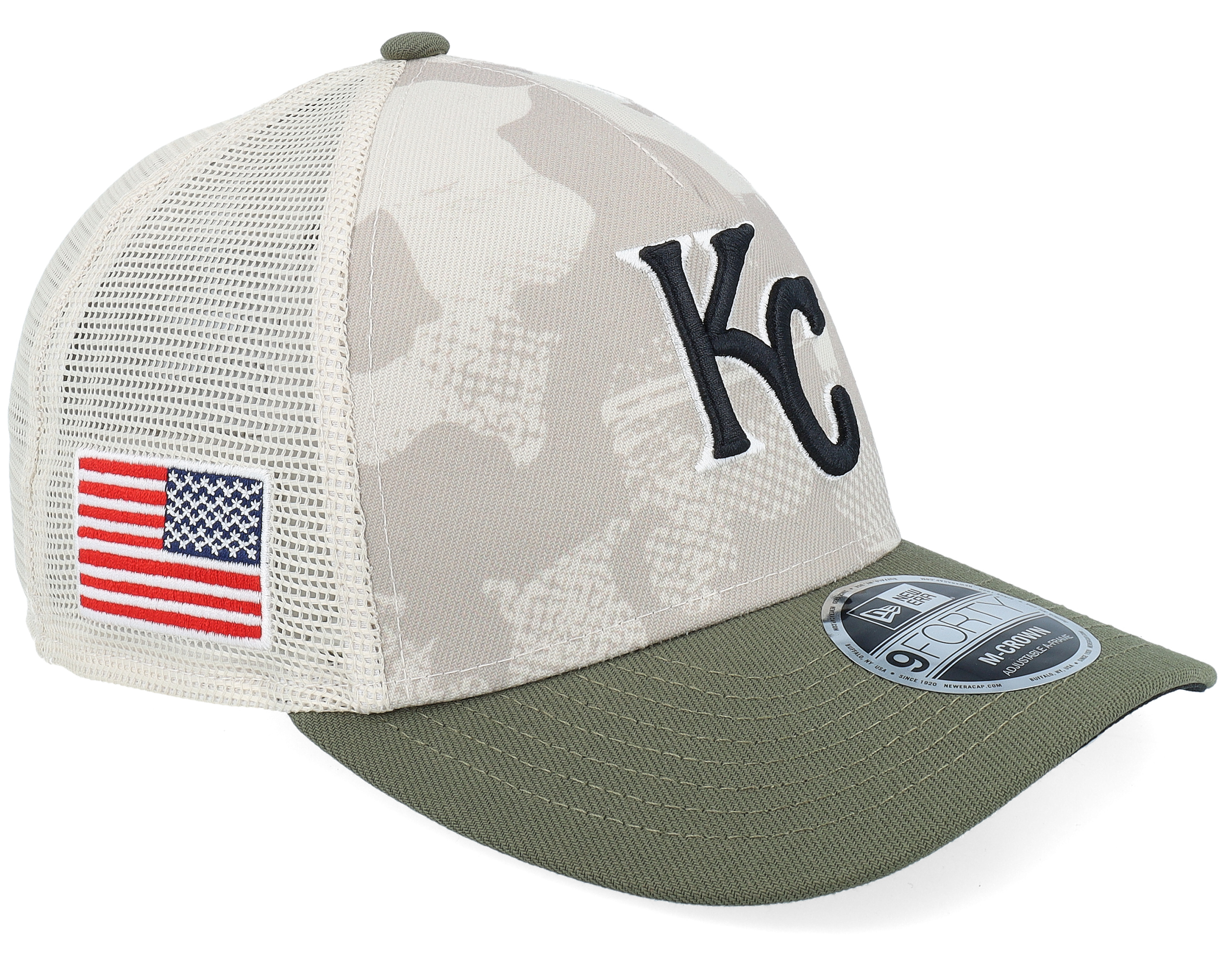 Kansas City Royals MLB Armed Forces Day 9FORTY Mc Stone/Olive A-frame Trucker